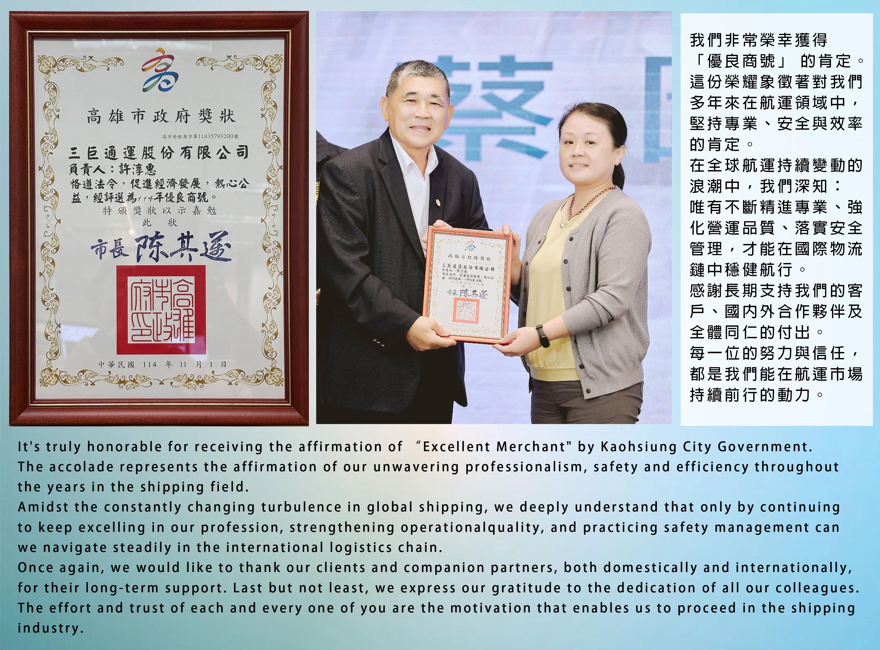 最後,三巨通運再次向大家表達最誠摯的感謝。我們將繼續秉持這份榮譽,不斷努力提供優質的服務給客戶, 並全心全意地關照每一位客戶的需求,我們期待與您攜手共創美好的未來。